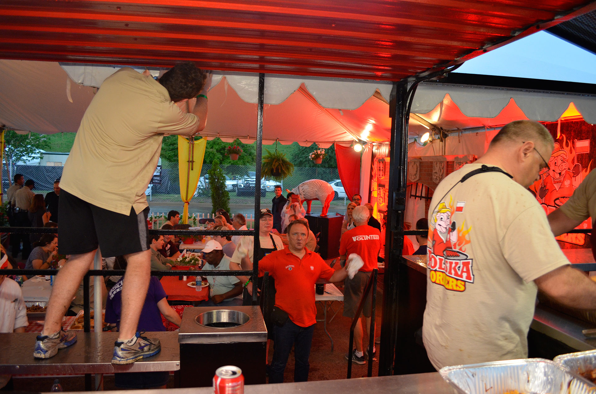 Przygotowywaliśmy dania kuchni Amerykańskiej, ale udało nam się też przemycić polskie smaki. Muszę przyznać, że wcale nie łatwo było przygotować BBQ w polskim klimacie bo Amerykanie po prostu innej kuchni nie lubią. Jednak klasycznie bigos, polędwiczki z grzybami, czy po prostu dobra kiełbasa obroniły polski smak.