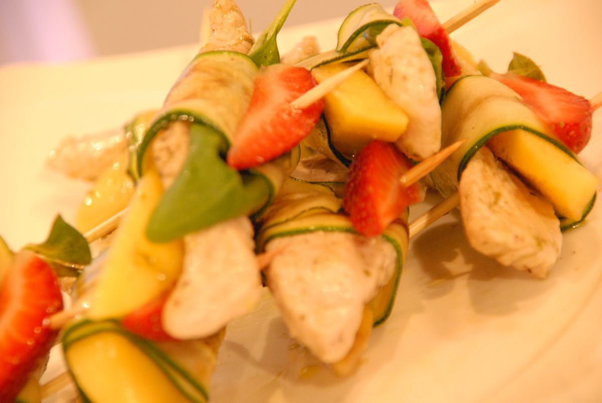 Roladki z grillowanej cukinii faszerowane mango i kurczakiem……………..na ciepło i zimno