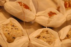 Sakiewki rozmaitości opiekane w pergaminie mini kuleczki z ryb lub mięsa na ciepło i zimno