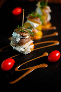 - Tatar - może być z łososia surowego lub wołowiny a do niego np. koper, kapary, oliwa, sól i pieprz i to na pumperniklu ubrane odrobiną kwaśnej śmietany.