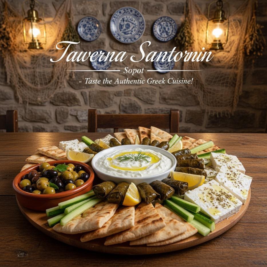 Tawerna Santorini to miejsce, w którym Grecja spotyka się z nadmorskim klimatem Sopotu. Jasne wnętrza, śródziemnomorska atmosfera i zapach świeżych ziół od pierwszej chwili wprowadzają w wakacyjny nastrój.